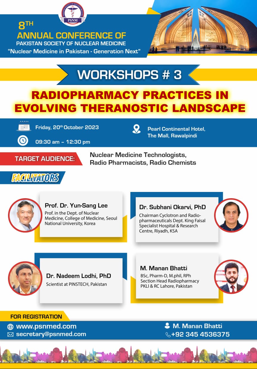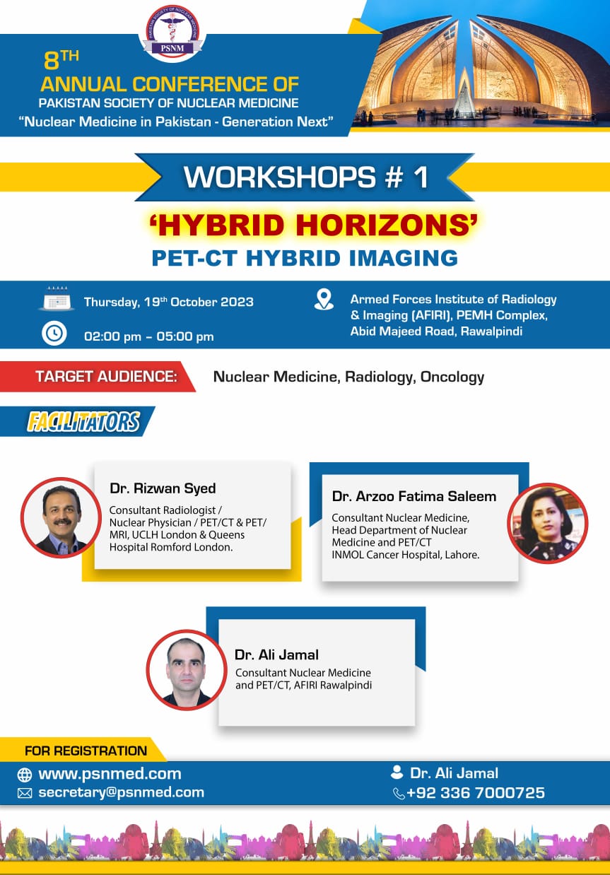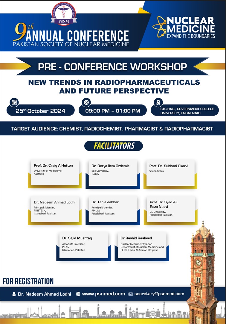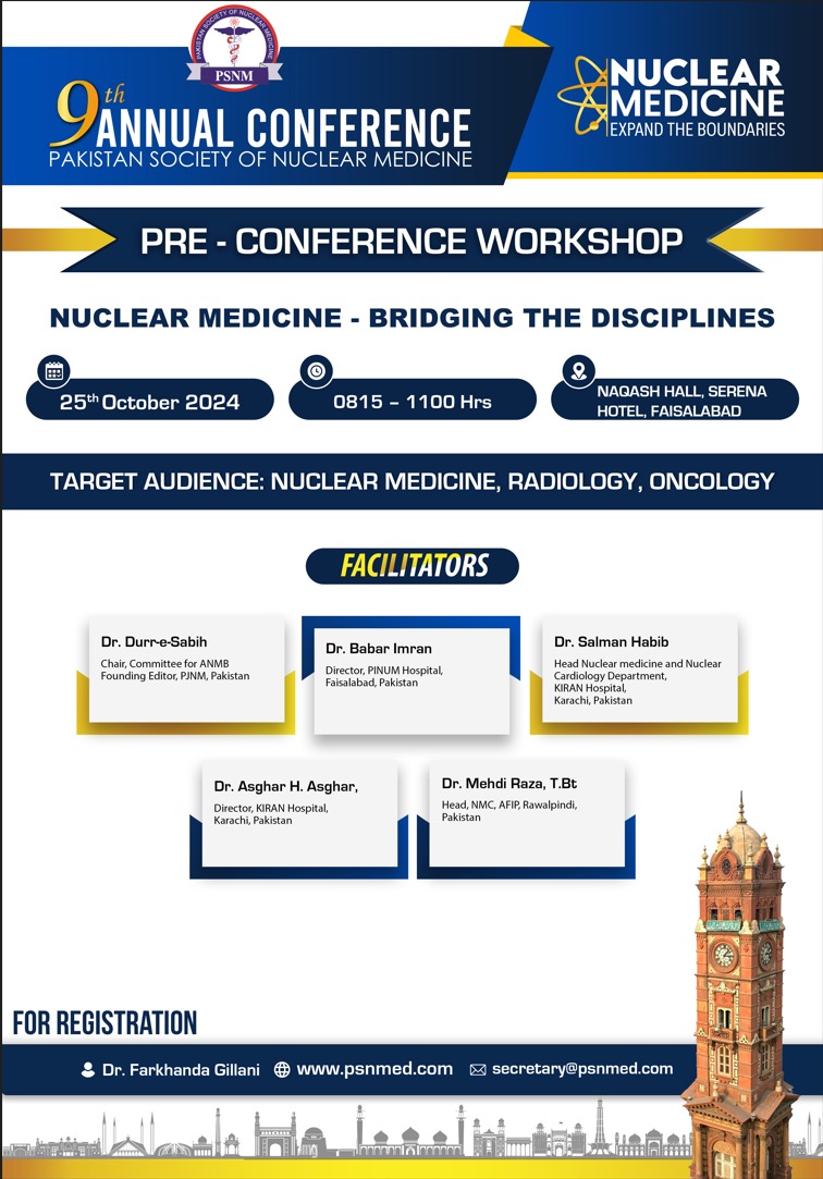 9th Annual Conference of Pakistan Society of Nuclear Medicine "Nuclear Medicine Expand the Boundaries" Pre Conference Workshop: 25th October, 2024 Venue: Naqash Hall, Serena Hotel, Faisalabad 08.15am – 11.00am