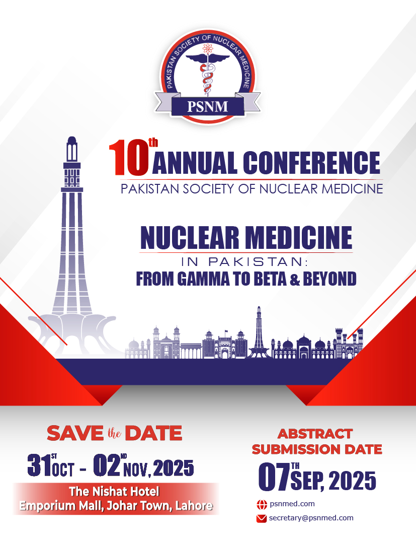 10th Annual Conference of Pakistan Society of Nuclear Medicine - Nuclear Medicine in Pakistan: From Gamma To Beta & Beyond. 31October - 2 November, 2025, The Nishat Hotel, Johar Town, Lahore